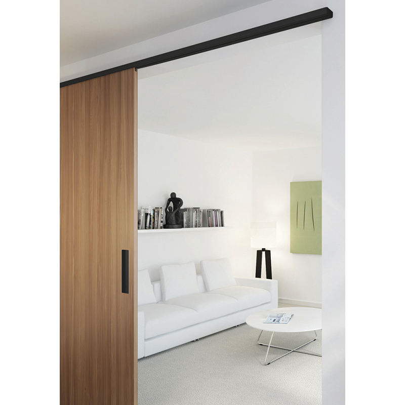 schwarz, für Wandmontage, einsetzbar aufgesetzt oder deckenbündig, minimale Einbauhöhe, höhenverstellbar, Laufwerke mit Gleitlager- bzw. Kugellagertechnik und Kunststoffrollen,