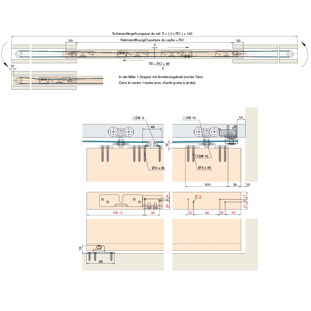 Teilgarnitur Holz, zu HAWA Porta 60 / 100 H und Divido 100