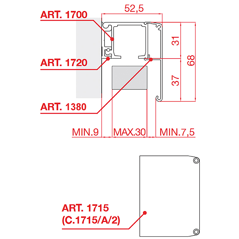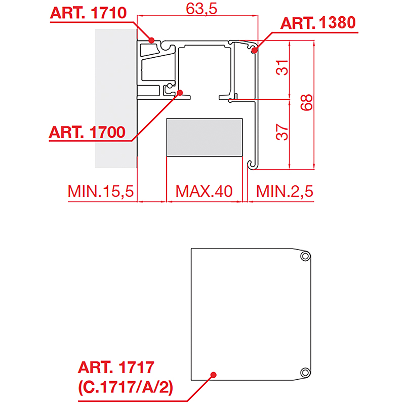 Laufschiene Typ 1280 oder 1700 mit Wandhalterprofil 1710/1720