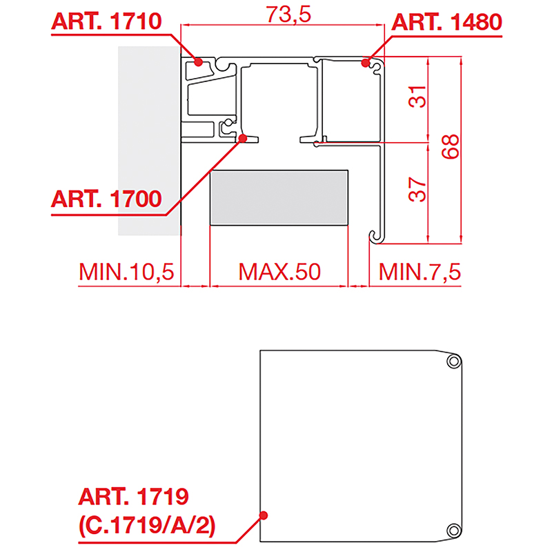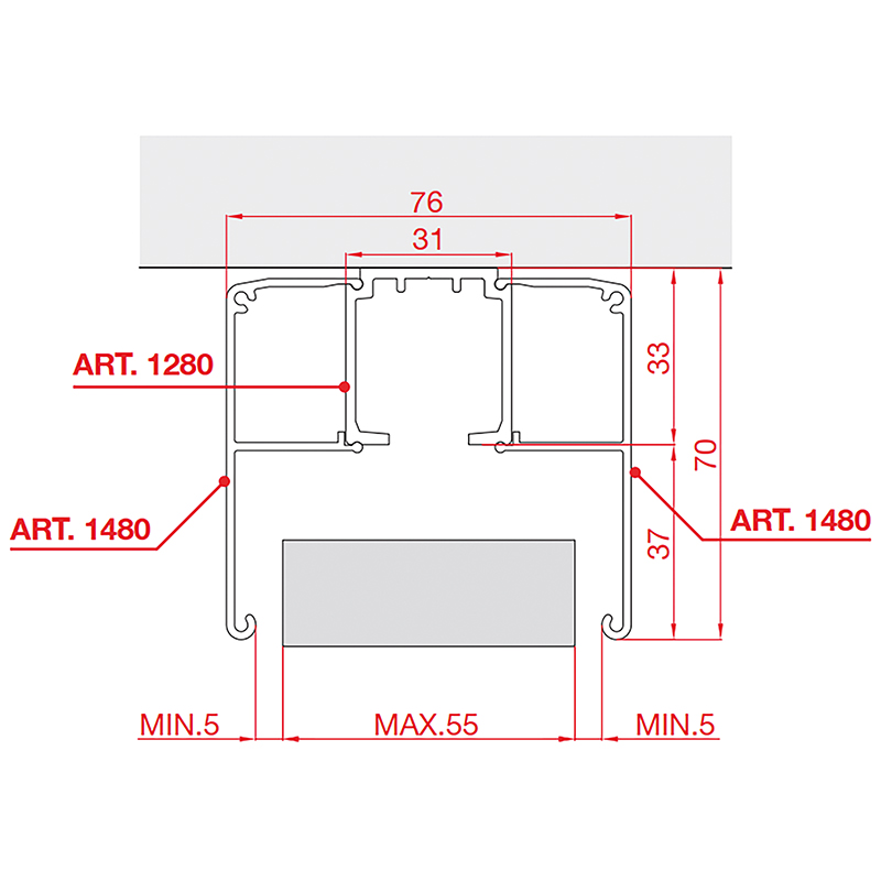 Laufschiene Typ 1280 oder 1700 mit Wandhalterprofil 1710