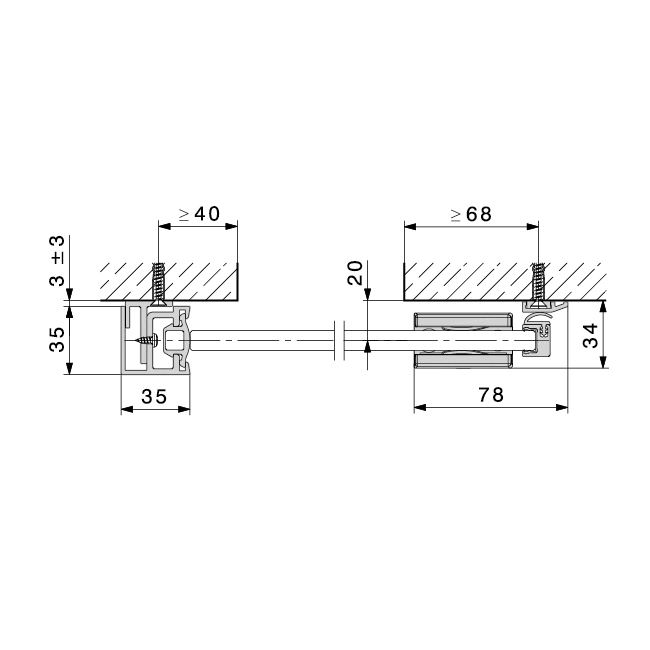 Abschlussprofilset Vorwandmontage HAWA, zu Schiebetürbeschlag Purolino-PLUS 80
