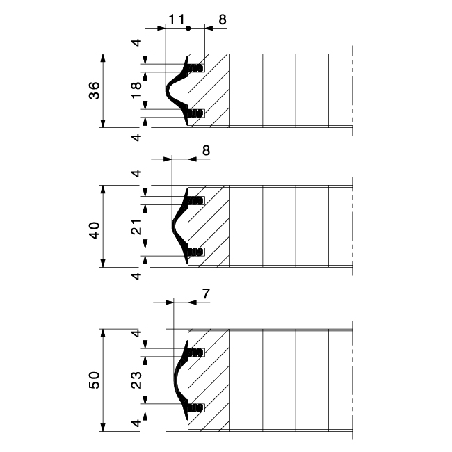 Nutabstand 23 mm ergibt Profilhöhe ca. 7 mm - ¦ = Verkauf nur in ganzen Längen.