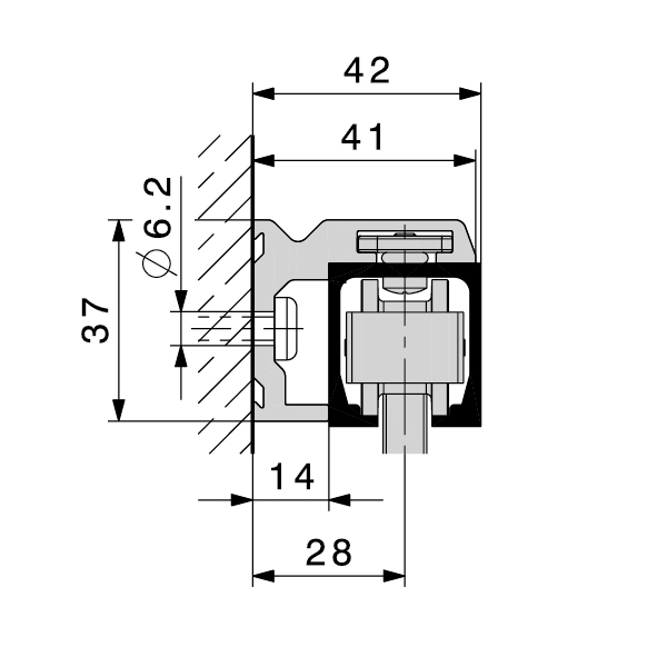 Aluminium farblos eloxiert, gebohrt für Wandmontage, Laufschienen werden einfach und schnell mittels Nutensteinen festgeklemmt, für Türdicken max. 44 mm