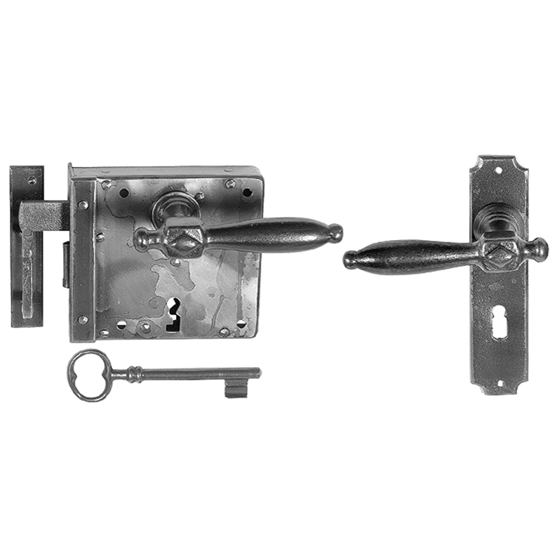 Schmiedeisen naturblank matt lackiert, mit hebender Falle, ohne Nachtriegel,