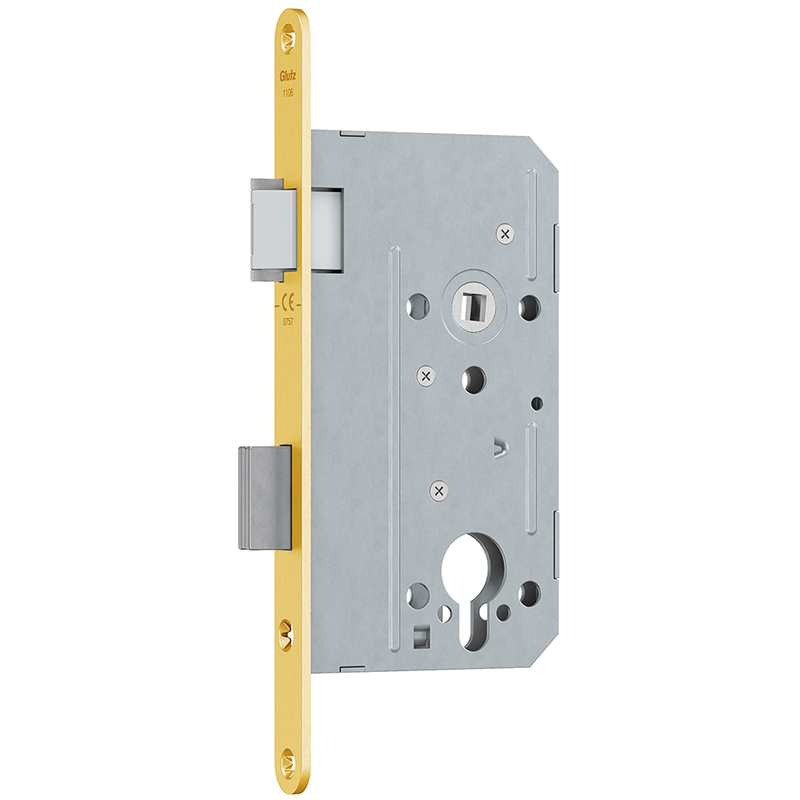 Einsteckschloss GLUTZ 1106, mit Rundstulp 18 x 230 mm Messing poliert