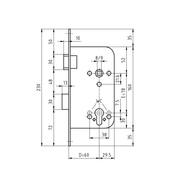 Delrinfalle, Fallendämpfung, Riegel 1-tourig, Riegelvorschub 13 mm, für gehobenen Wohnungsbau, Geschäfts-, Schul- und Krankenhäuser,