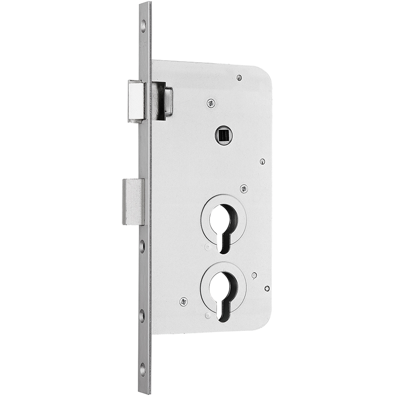 mit Zwangsnuss, mit Stahlfalle, mit Stahlriegel 1-tourig, Riegelvorschub 13 mm, mit Wechselfunktion, für Geschäftshäuser und grosse Wohneinheiten sowie alle Gebäude mit Zutritt der Kommunalwerke, ohne Schliessblech