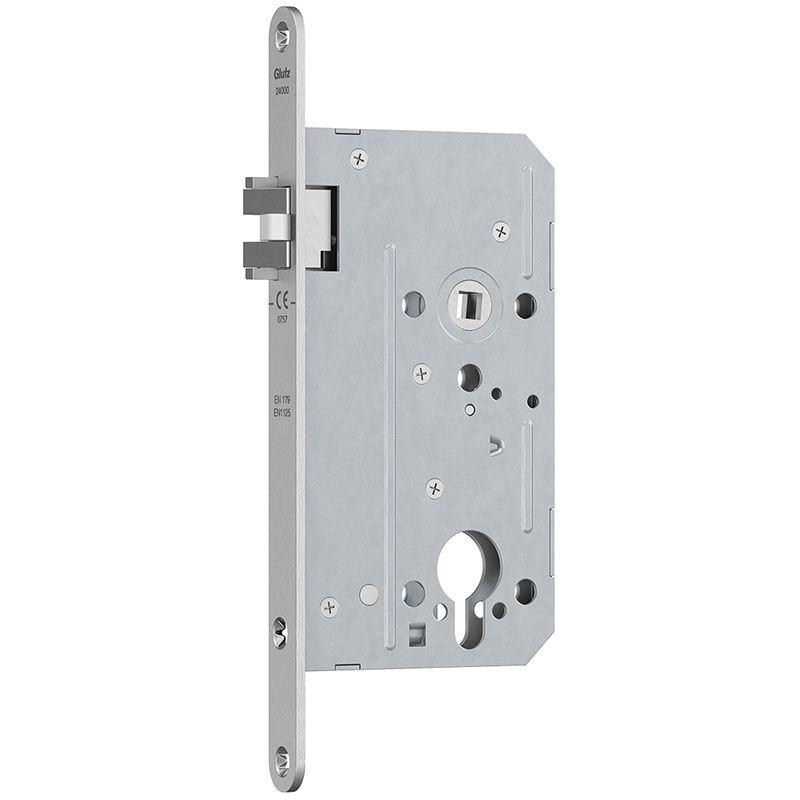 Einsteckschloss GLUTZ 24000, ohne Riegel, mit Kurbelfalle, mit Rundstulp 18 x 230 mm Edelstahl matt, Nuss 9 mm