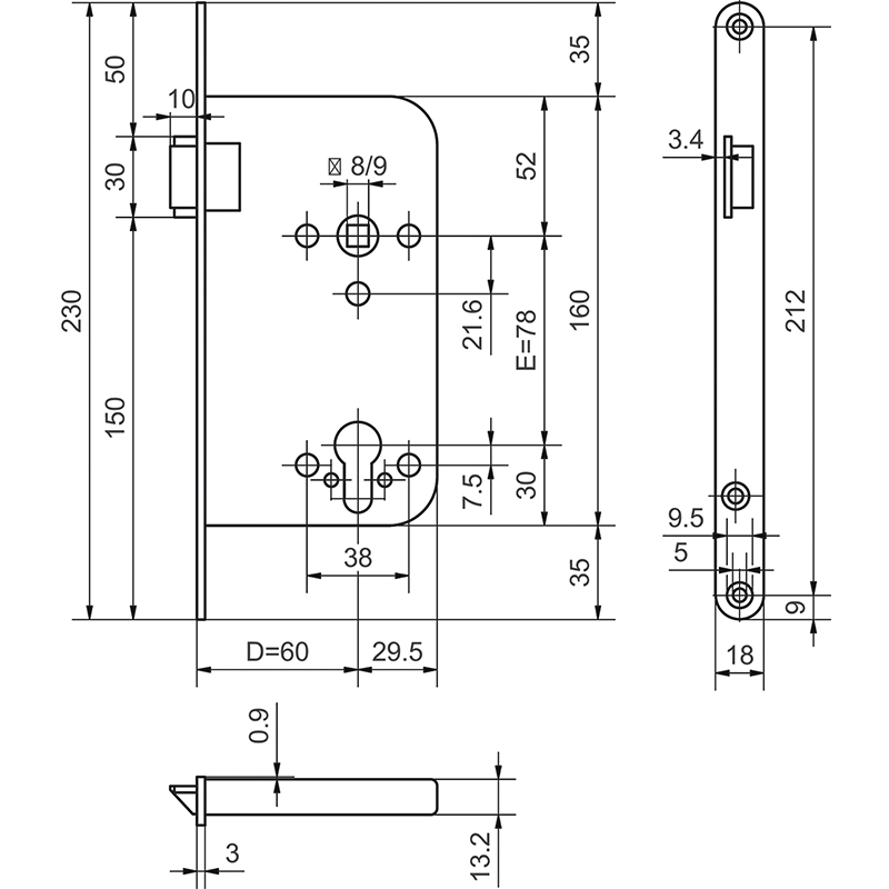 - Serrure à mortaiser 12500 voir 17.113.