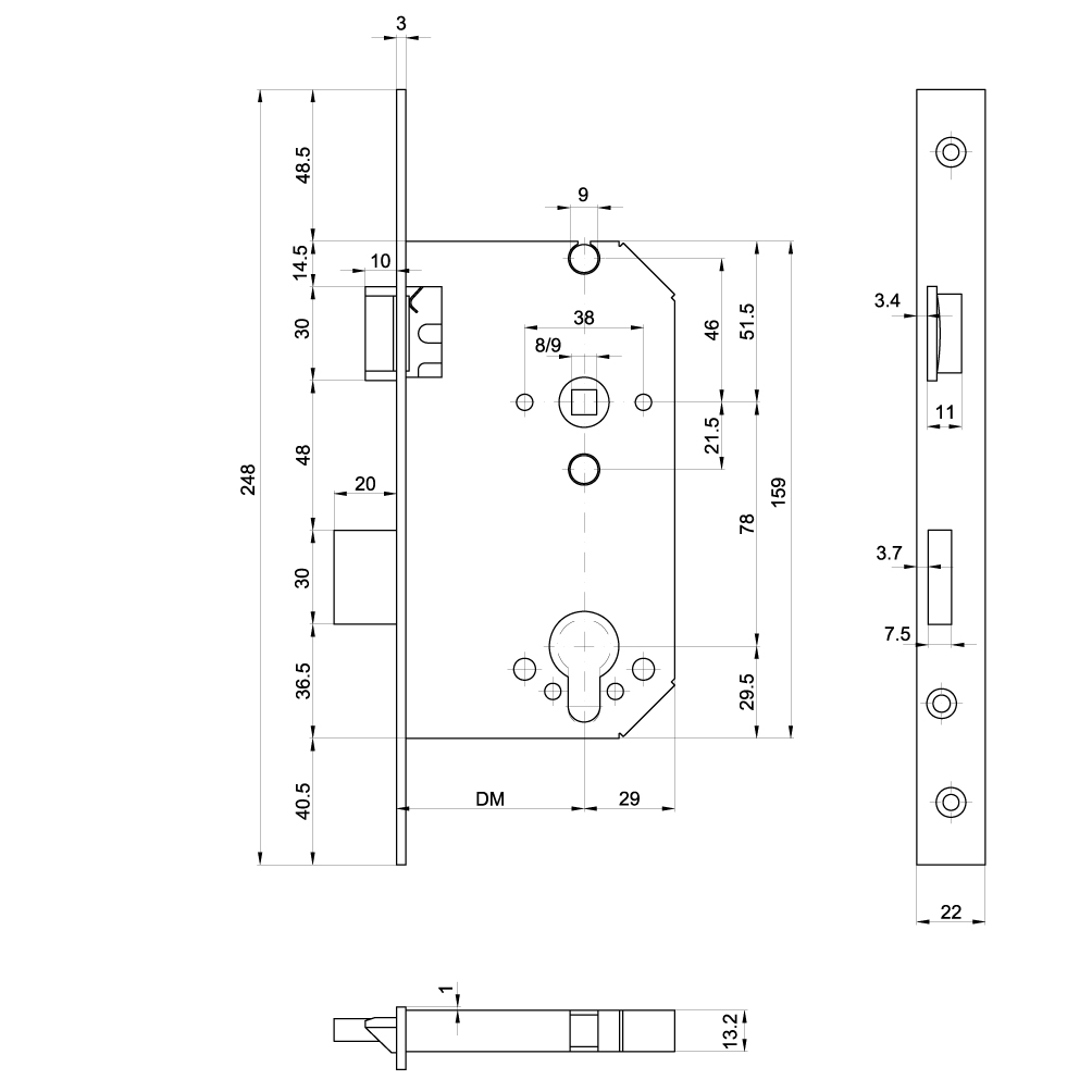 Einsteckschloss MSL Casa Beta 1123, mit Reno-Stulp eckig 22 x 248 mm Edelstahl matt