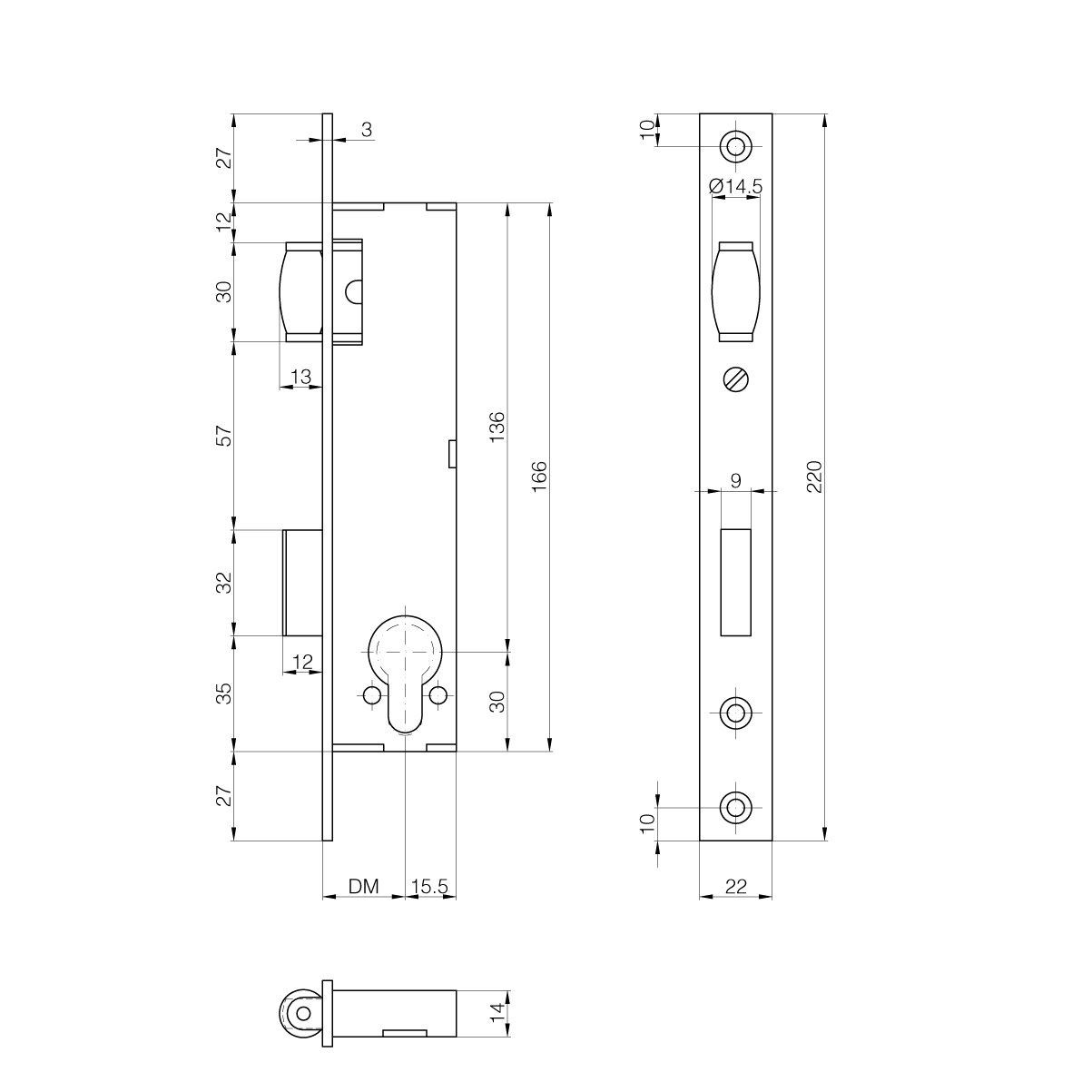 Einsteckschloss MSL Porta 1924, mit Rollfalle, für Rohrrahmenprofil, mit Eckstulp 22 x 220 mm verzinkt