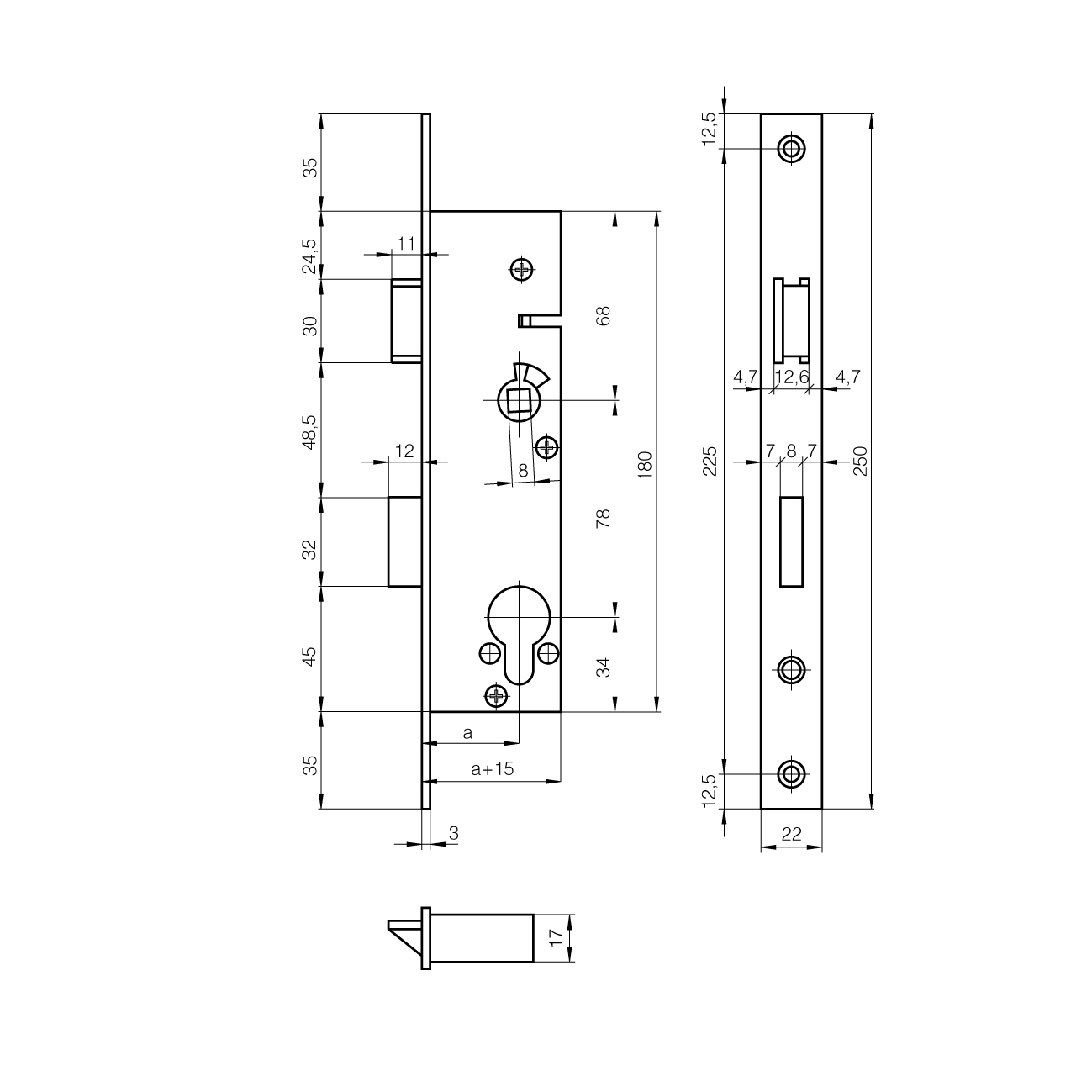 Einsteckschloss SCHÄNIS 1902, für Rohrrahmenprofil, mit Eckstulp 22 x 250 mm verzinkt