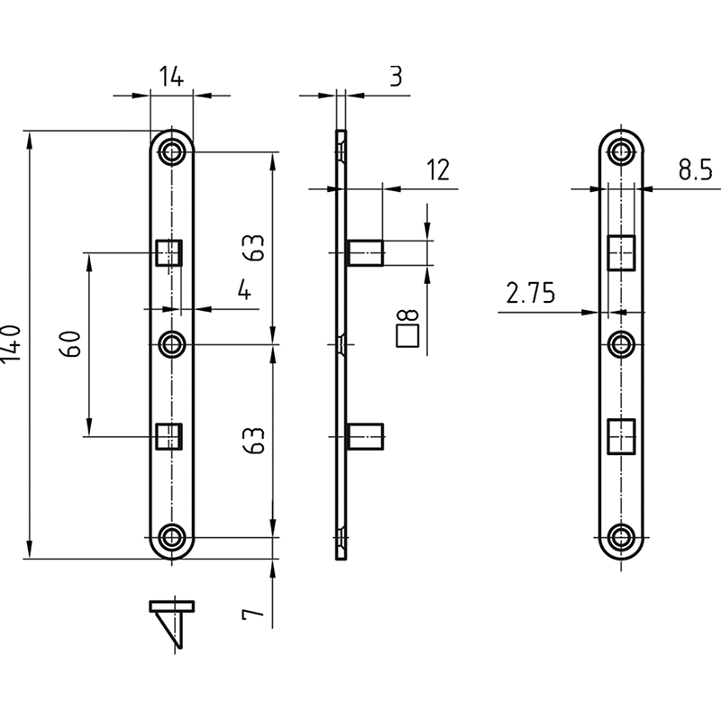 Stahl verzinkt, zum Einlassen in Türe und Rahmen auf der Bandseite, unsichtbarer Schutz gegen Aufhebelversuche, 1 Garnitur bestehend aus