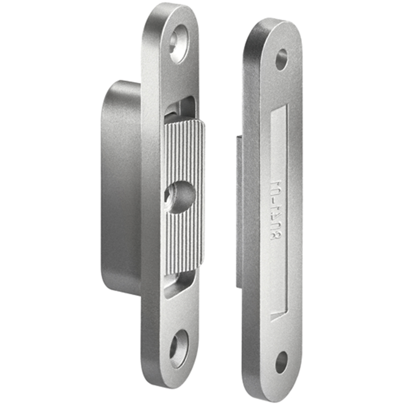 Stahl verzinkt, zum Einlassen auf der Bandseite, Falzluft im Flügelteil verstellbar, mit Verzahnung, die ineinandergreifenden Zähne vom Flügel- und Rahmenteil machen ein Aufhebeln der Tür nahezu unmöglich