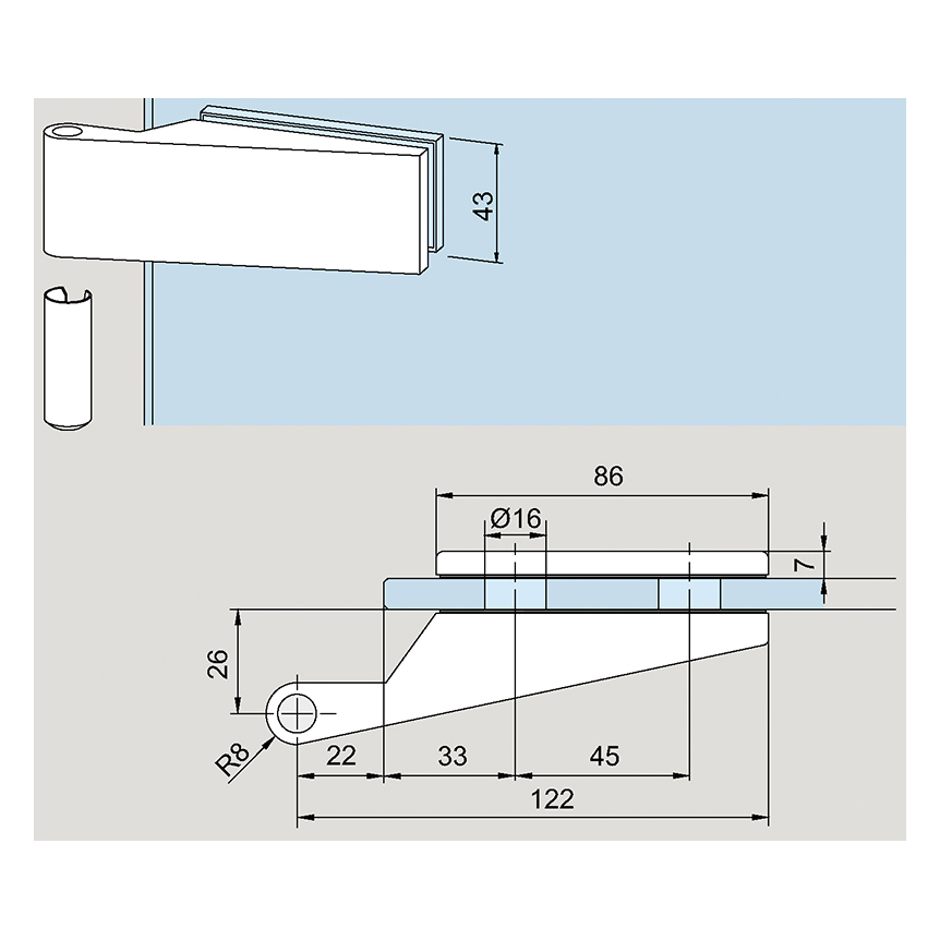Aluminium eloxiert oder pulverbeschichtet (schwarz),Band für Rahmenteile, für Glasstärke 8 mm (Falztiefe 24 mm) oder Glasstärke 10 mm (Falztiefe 26 mm), mit Abdeckhülse