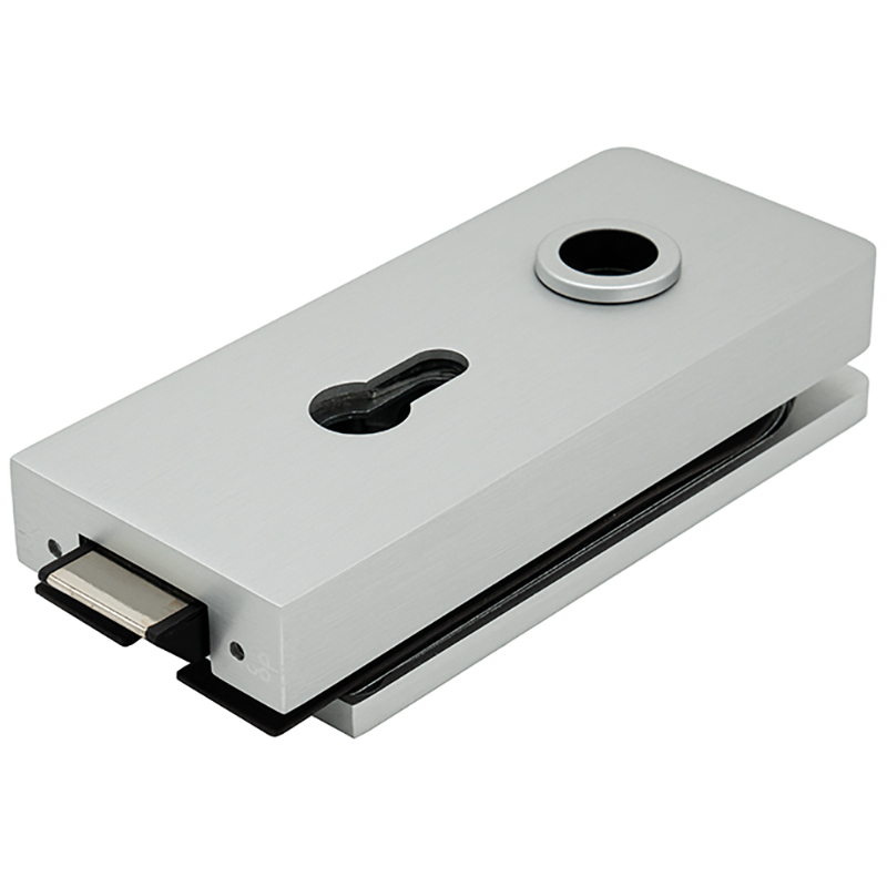 Aluminium eloxiert oder pulverbeschichtet (schwarz),Schlosskappen aus Aluminium-Vollmaterial, hochwertige Optik, Flüster-Komfort-Geräuschdämpfung, für Glasstärke 8 mm (Falztiefe 24 mm) oder Glasstärke 10 mm (Falztiefe 26 mm), geeignet für Drücker ohne Rosetten mit 8 mm Vierkantstift und Drückerführung Ø 18 mm, max. 8 mm lang, ohne Drücker, ohne Zylinder