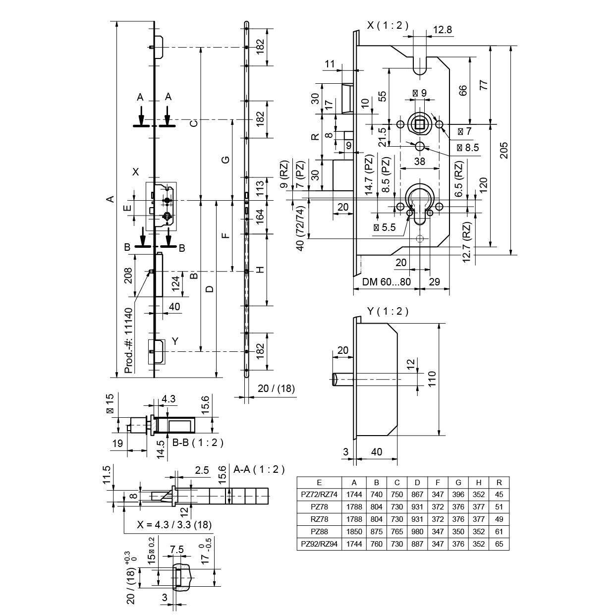 Mehrpunktverriegelung GLUTZ MINT 18992 SVM eco NF, selbstverriegelnd, motorisch öffnend, Nachtfunktion, umstellbare Komfortfalle, Rundstulp 18 / 20 x 1788 mm, Edelstahl matt