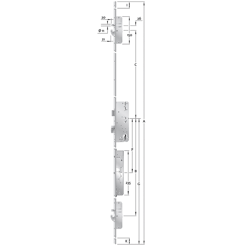 Mehrpunktverriegelung KFV MFS GENIUS EA AS 2600 B001, schlüsselbedient, Flachstulp 16 / 20 x 2170 mm