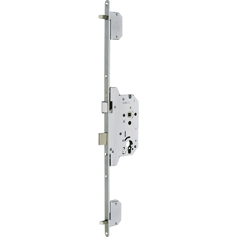 4-Punkt-Verriegelung durch Hauptriegel, 2 Riegelfallen und Fallenblockierung, mit Zwangsnuss, mit Delrinfalle, Riegel- und Bolzenvorschub 20 mm, 1-tourig, Riegel aus gehärtetem Spezialstahl, mit Wechselfunktion