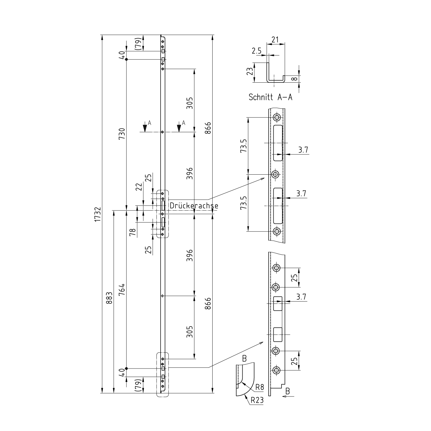 Einfrässchliessleiste GLUTZ B-1157.721, zu Mehrpunktverriegelung TREPLANE