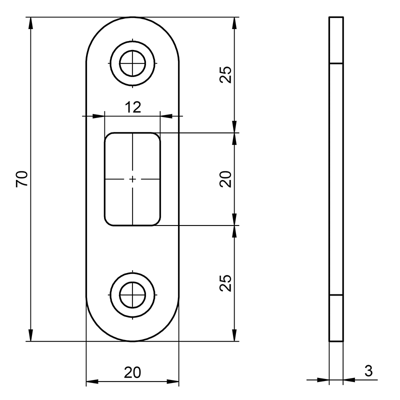 Flachschliessblech für Zusatzkästen oben / unten, 70 x 20 x 3 mm