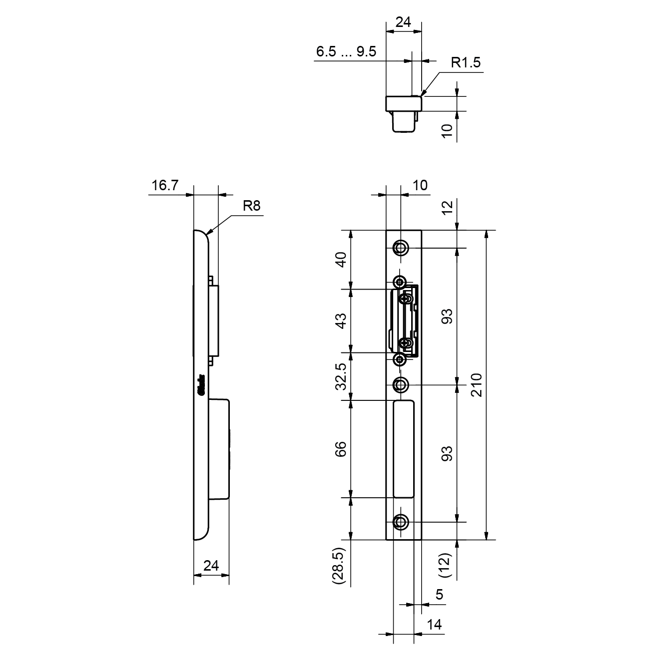 Kappenschliessblech GLUTZ 16610, verstellbar 24 mm, Edelstahl matt, als Hauptschliessblech