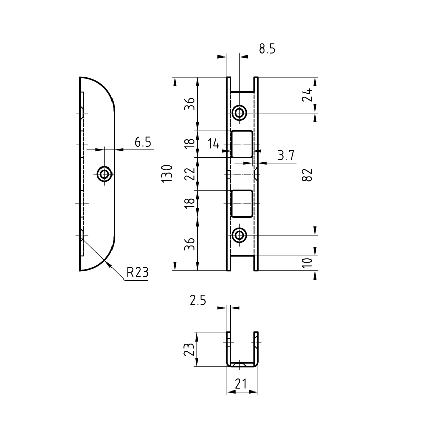 Acier galvanisé, à fraiser, avec découpe pour verrou supplémentaire de verrouillage multipoints et serrures à 3 becs-de-cane, utilisable universel en DIN à droite et DIN à gauche, sans vis