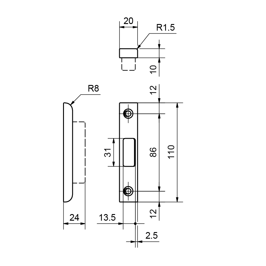 Riegelschliessblech GLUTZ B-1132, zu Mehrpunktverriegelung MINT