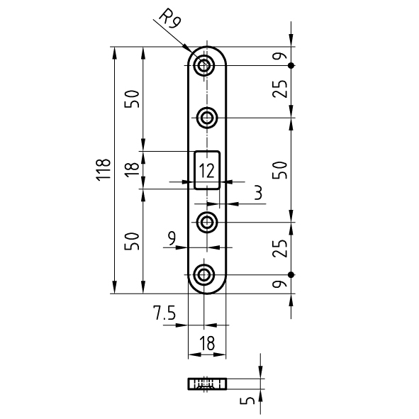 Stahl verzinkt oder Edelstahl matt, abgerundet, zum Einfräsen,
