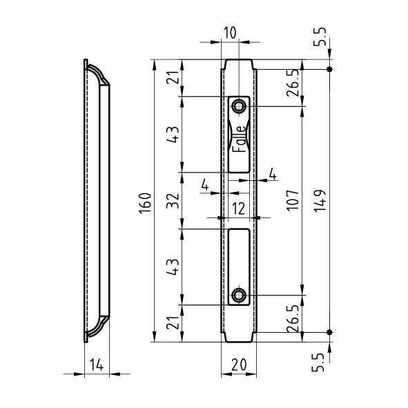 Stahl verzinkt, vernickelt, vermessingt oder Edelstahl matt, mit Ausschnitt für Riegel und Falle, universal DIN rechts und DIN links verwendbar, ohne Schrauben