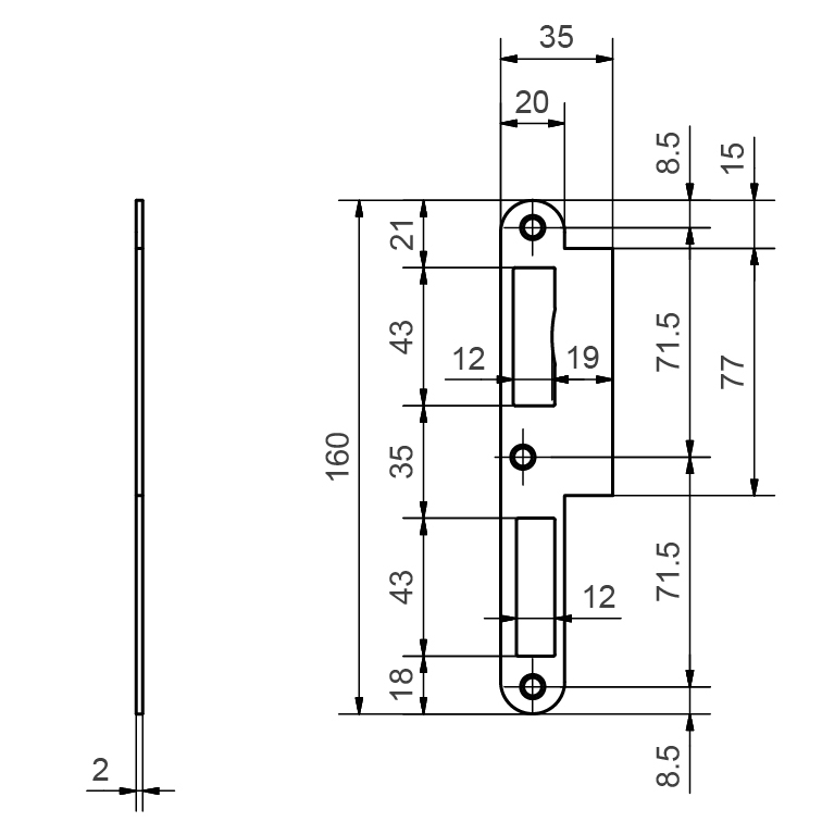 Edelstahl matt, mit Ausschnitt für Riegel und Falle, universal DIN rechts und DIN links verwendbar, ohne Schrauben