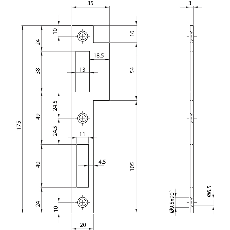 Stahl, blau verzinkt, für Profiltüren metall, Grösse 175 x 20 / 35 mm, ohne Schrauben