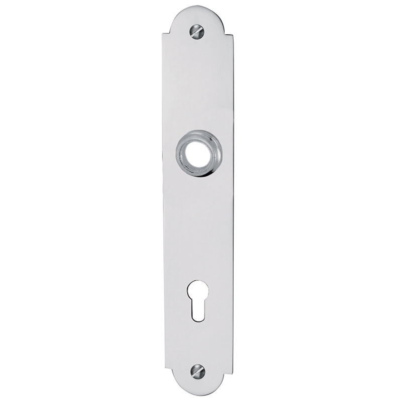 Messing poliert verchromt, Türdrücker: für Türstärke 60mm bei Haustüren, Distanz Drückerloch - oberes Schraubenloch 69 mm, Schrauben im Lieferumfang enthalten