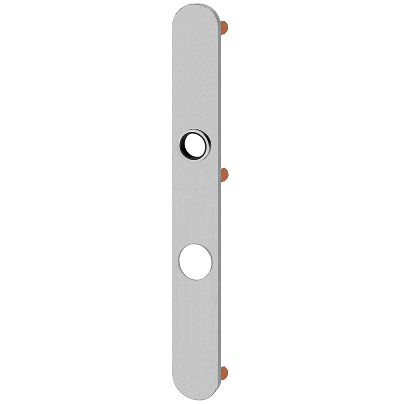 Innenschild mit Schraubenlöcher, Mitte oberes Schraubenloch bis Mitte Drückerführung 77 mm, ohne Schrauben