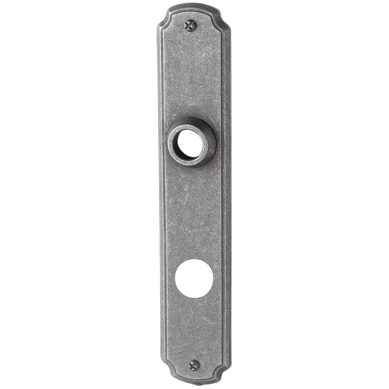 Schmiedeisen thermopatiniert®, Drückerführung 18 mm, oberes Schraubenloch bis Mitte Drückerführung 77 mm, mit Schrauben