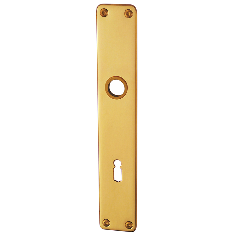 Messing poliert, Drückerführung 16 mm, oberes Schraubenloch bis Mitte Drückerführung 70 mm, mit Schrauben