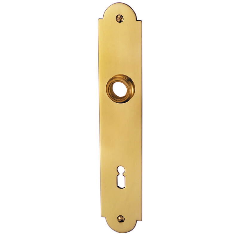 Messing poliert, Drückerführung 18 mm, oberes Schraubenloch bis Mitte Drückerführung 69 mm, mit Schrauben