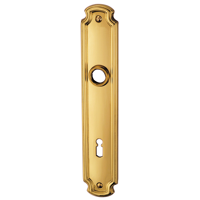 Messing poliert, Drückerführung 18 mm, oberes Schraubenloch bis Mitte Drückerführung 94 mm, mit Schrauben