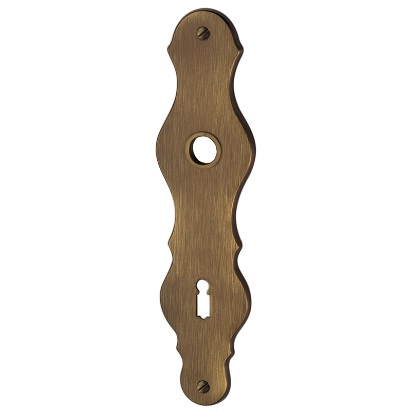 Messing brüniert, Drückerführung 18 mm, oberes Schraubenloch bis Mitte Drückerführung 67 mm, mit Schrauben