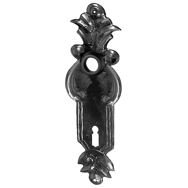Eisen naturblank (geringe Korrosionsbeständigkeit), Distanz Drückerloch - oberes Schraubenloch 58 mm, Schrauben im Lieferumfang enthalten