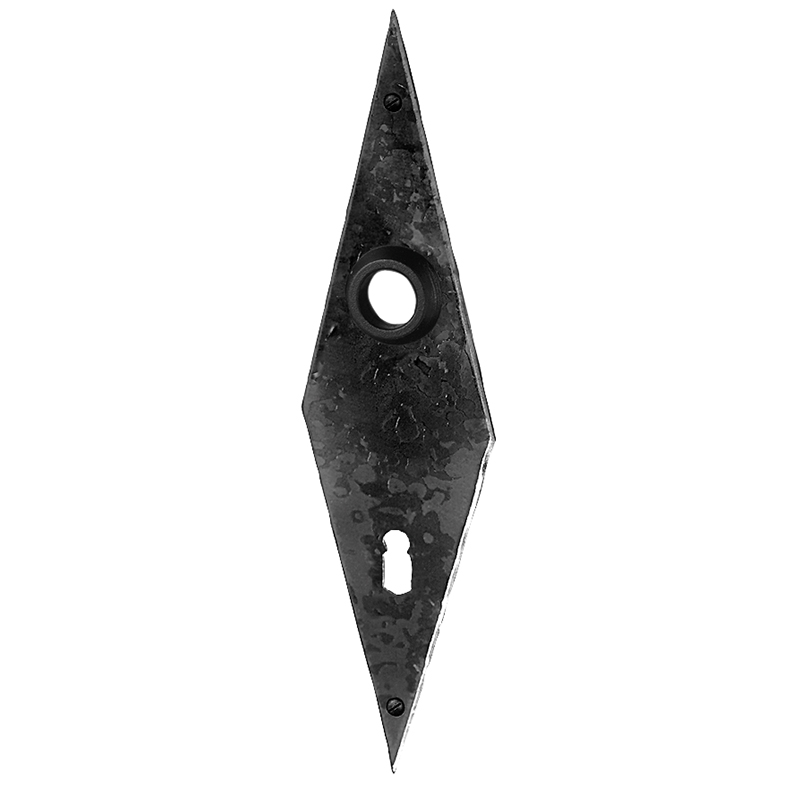 Eisen naturblank (geringe Korrosionsbeständigkeit), Distanz Drückerloch - oberes Schraubenloch 50 mm, Schrauben im Lieferumfang enthalten