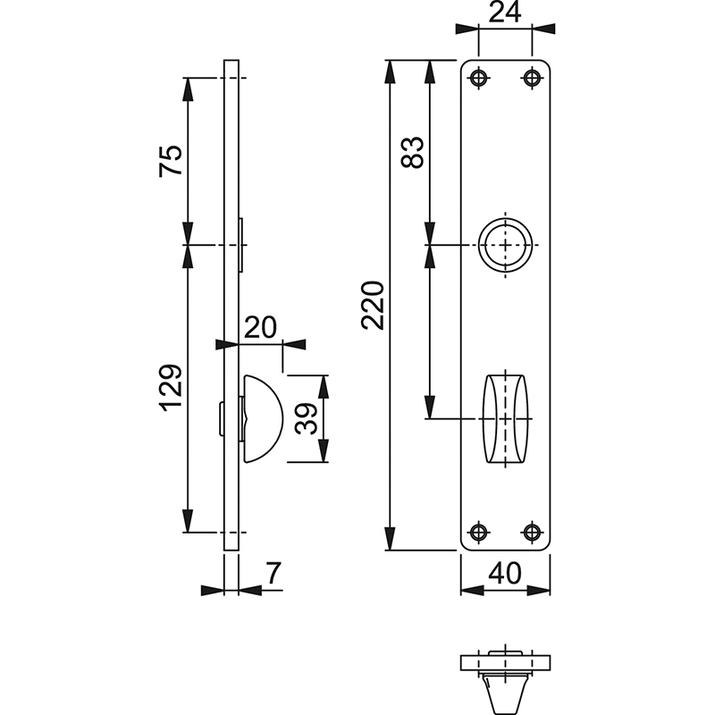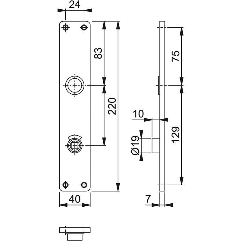 oberes Schraubenloch bis Mitte Drückerführung 75 mm,