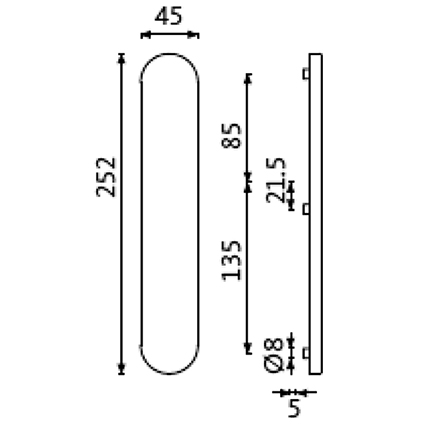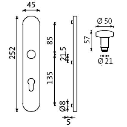 Schildgrösse 45 x 252 x 9 mm, Knopf-Ø 50 mm, Ausladung 57 mm