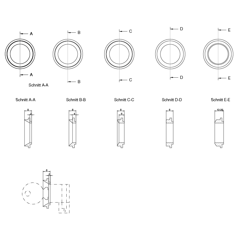 - Länge wird durch Mass Aussenkant Schliesszylinder zur Türe bestimmt.