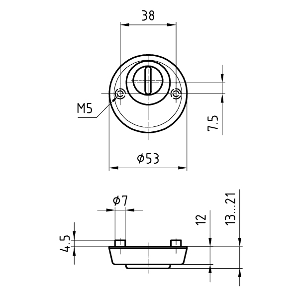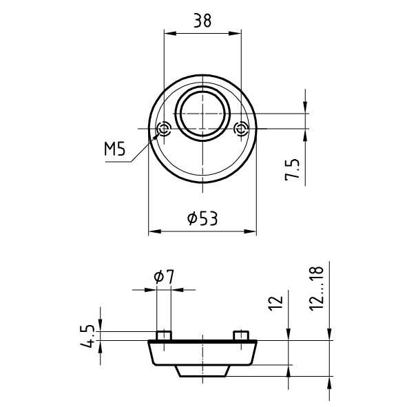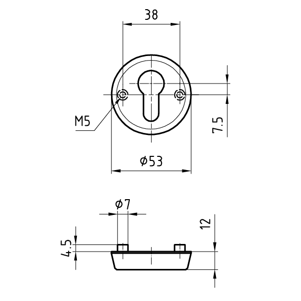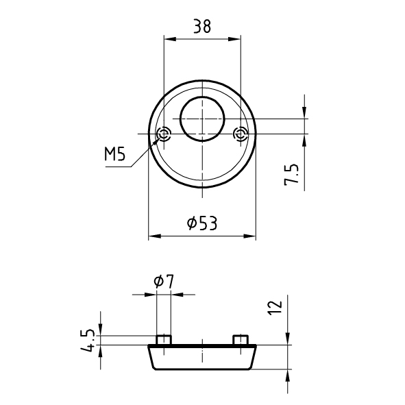 Aussenrosette 53 x 12 mm mit Gewindenocken M5 x 4,5 mm,