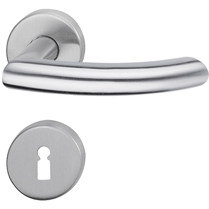 Edelstahl matt, Drückerführung aus Messing, für den Einsatz bei Zimmertüren mit einer geringen Benutzungshäufigkeit im Wohnungsbau
