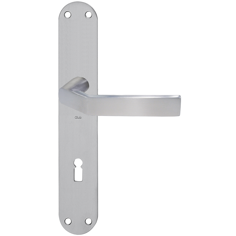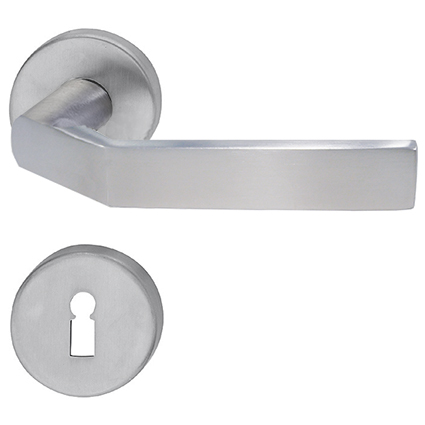 Edelstahl massiv matt, geprüft für Benutzerkategorie Klasse 3 nach EN 1906: 2002-05, für den Einbau an Feuer- und Rauchschutztüren nach DIN 18273: 1997-12, für Geschäftshäuser, Verwaltungsbauten, gehobenen Wohnungsbau, für Vollblatt- und Rohrrahmentüren geeignet