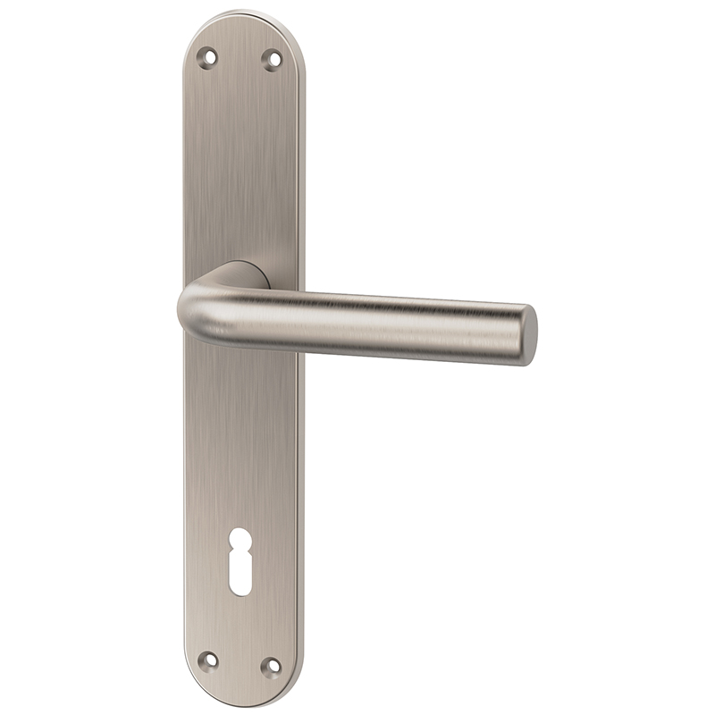 Zink geschliffen matt vernickelt, geprüft für Benutzerkategorie Klasse 4 nach EN 1906, geeignet für den Einbau an Feuer- und Rauchschutztüren nach EN 1906