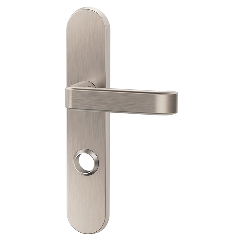 Messing geschliffen matt vernickelt, geprüft für Benutzerkategorie Klasse 4 nach EN 1906, geeignet für den Einbau an Feuer- und Rauchschutztüren nach EN 1906, geprüft nach DN EN 1634