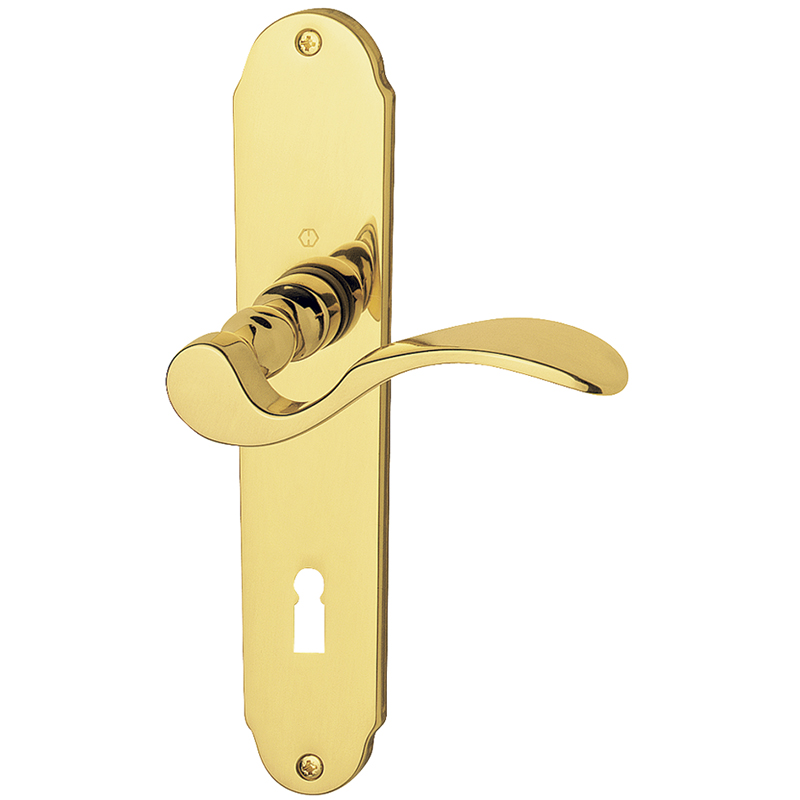 Messing poliert, mit Schnellstift-Verbindung, mit Schrauben, Garnitur bestehend aus Stiftteil, Lochteil und 2 Schildern